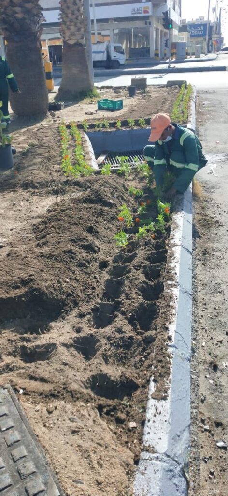 كما أشار الحويطي الى أن البلدية ممثلة في ادارة الحدائق والتجميل تقوم بمواصلة اعمال خطتها الزراعي بشكل مكثف اذ انها زرعت خلال الأسبوع الماضي نحو 3000 شتلة من الزهور بالإضافة الى زراعة 620 شجرة وصبار وشجيرات تم توزيعها على كافة المحافظة ، والبلدية تعتني بشكل فائق بعملية الزراعة وتقليم الاشجار وتسميدها وريها بالطريقة الصحيحة خصوصا في الجزر الوسطية للشوارع وفي الميادين العامة والحدائق والمتنزهات.