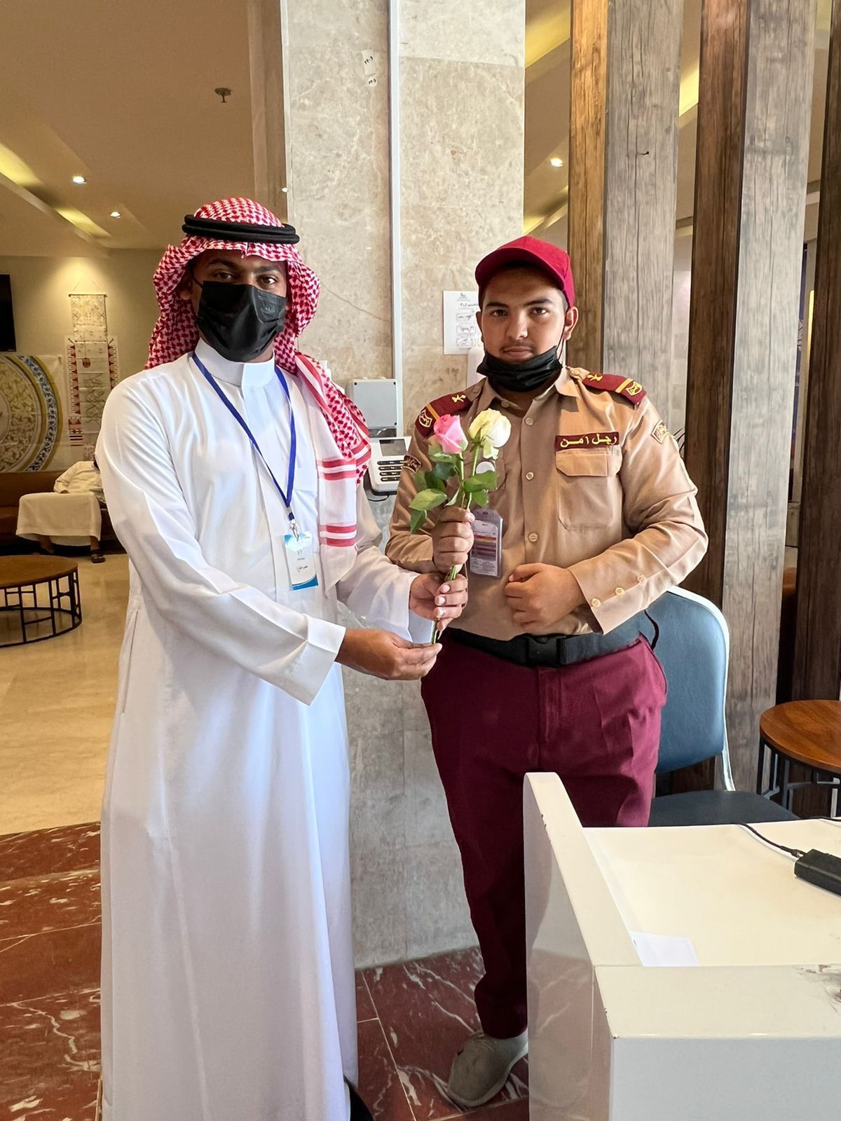 بعد ذلك قام الفريق بشقيه النسائي والرجالي بتوزيع الهدايا من باقات ورد تحمل أجمل العبارات كي ترسم الإبتسامة على محياهم ، وهدايا عينية أخرى.