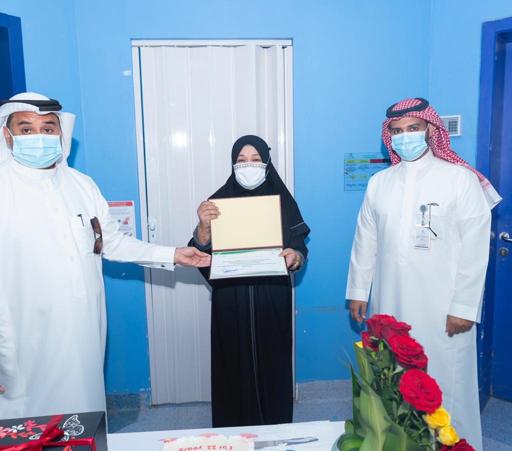 هذا ويذكر بأن فنية الأشعة قد أمضت 22 عاما في خدمة مرضى ومراجعي المستشفى.