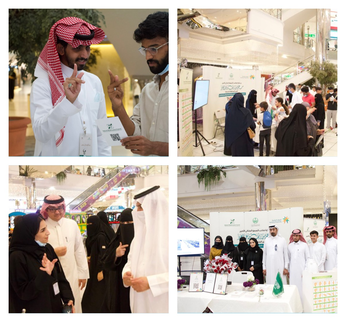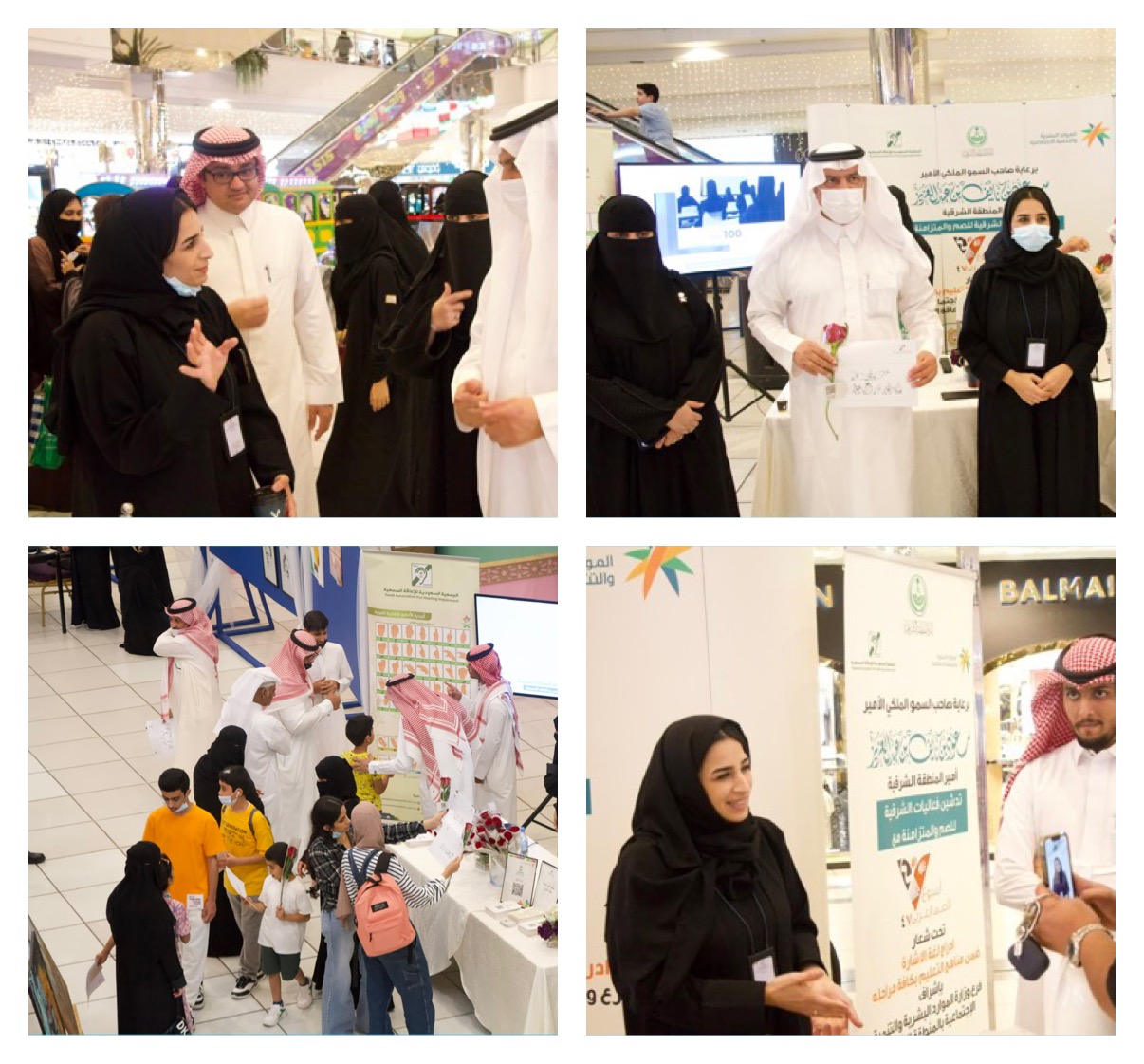 بمجمع الراشد مول بركن تعريفي عن الجمعية والخدمات التي تقدمها وتم نشر ثقافة لغة الاشارة للزوار الركن عن طريق تدريبهم على الحروف الاشارية العربية و طباعة الاسماء بلغة الاشارة وقد لاقى الركن اقبال كبير من الزوار بجميع الاعمار وتم توزيع بروشرات الابجدية والقواميس الاشارية على موظفين المحلات في المول .