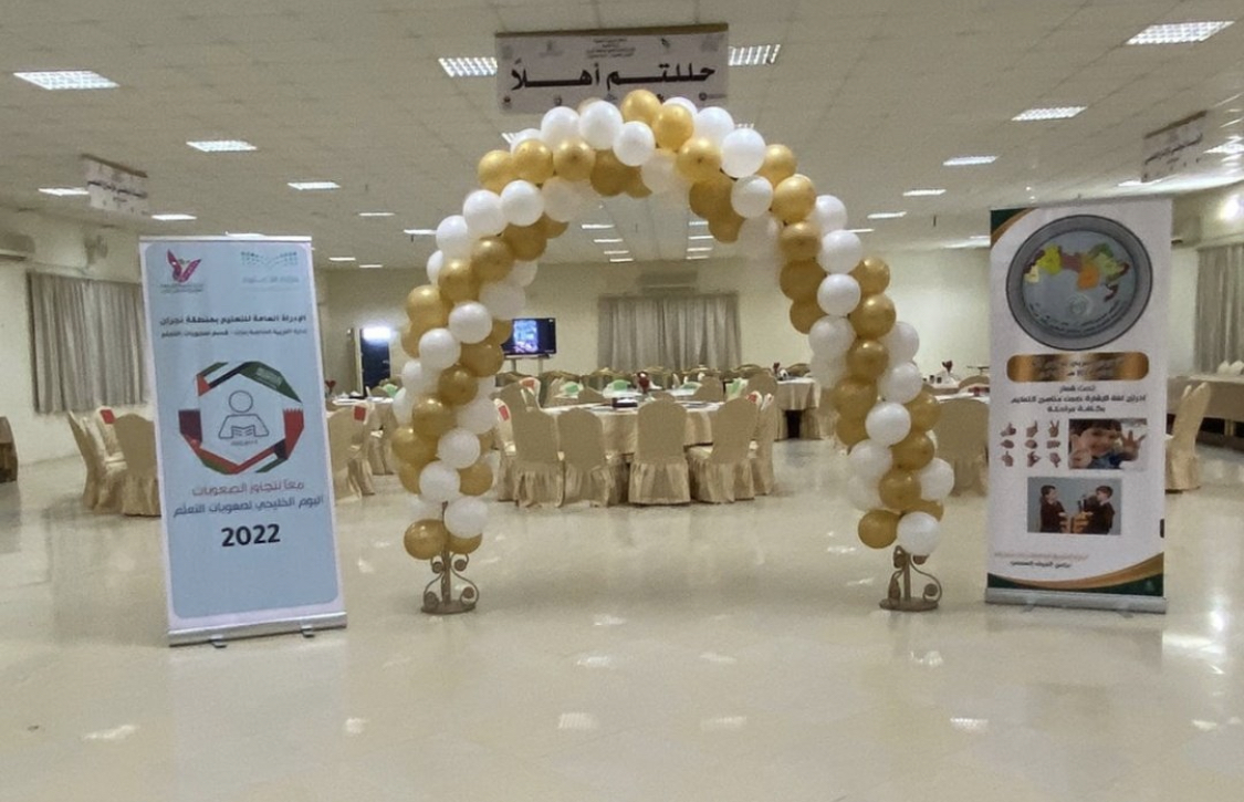 برعاية مدير عام تعليم منطقة نجران الأستاذ فهد بن صالح عقالا اقامت الشئون التعليمية بنات ممثلة في ادارة التربية الخاصة فعاليات اليوم الخليجي لصعوبات التعلم وأسبوع الأصم العربي ٤٧ يوم الخميس الموافق ١٨/ ١٠ / ١٤٤٣ هـ ذلك بمسرح بيت الطالب .