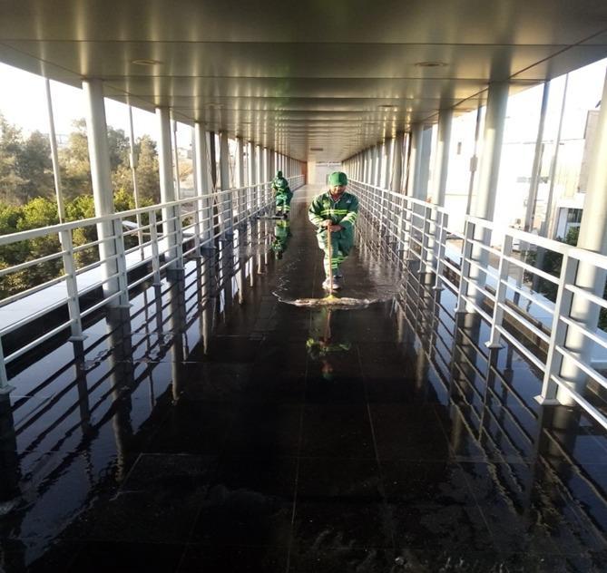 وأوضح مدير عام إدارة النظافة المهندس محمد سبران بأنه تم غسل و تنظيف نحو 4376 م2 متر من جسور المشاة ، ورفع 748 طن منمخلفات البناء و الهدم ، كما رفع نحو 4400 طن من النفايات الصلبة ، و تمت إزالة 28 مركبة مهملة ، فيما نفذت سلسلة من الإجراءات التي تمثلت في تكثيف فرق الكنس اليدوي، ومضاعفة عمليات الالتقاط و التي تجاوز ما تم التقاطه نحو 125 طن ، وزيادة ساعات العمل للمكانس الآلية و التي غطت نحو 864 كم .