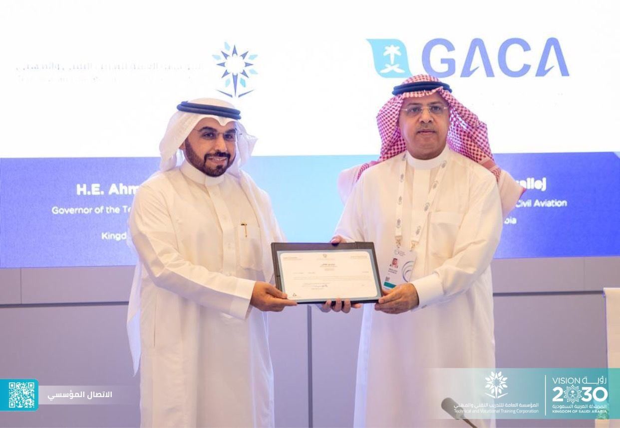 سلّم محافظ المؤسسة العامة للتدريب التقني والمهني معالي الدكتور أحمد بن فهد الفهيد الرخصة النهائية لأكاديمية المطارات لرئيس الهيئة العامة للطيران المدني معالي الأستاذ عبد العزيز بن عبد الله الدعيلج، وذلك إيذانًا بالبدء في إجراءات إطلاق أكاديمية المطارات وتفعيلاً لبرنامج التعاون المشترك بين الجانبين في مجال تنمية القوى العاملة الوطنية.
