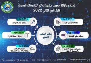 وقد أوضح رئيس بلدية خميس مشيط المهندس محمد بن ناجم الحويطي بأن اعمال البلدية قد تضمنت منذ بداية الربع الثاني من العام الحالي 2022 معالجة أكثر من 8,600 متراً طولياً للدهانات، والعلامات المرورية، والخطوط الأرضية ، فيما رفعت كفاءة وجاهزية شبكة الطرق من خلال معالجة نحو 6,351 م2 لحفر الشوارع والتشققات في مواقع مختلفة بالمحافظة وفق خطة شاملة لتحسين شبكة الطرق ورفع كفاءتهاإلى أفضل مستوى ممكن ، بالإضافة إلى جانب صيانة التجهيزات الداخلية لاكثر من 250 عامود إنارة ، وإصلاح الأرصفة المتهالكة والانترلوك والتي بلغت مساحتها نحو 7,000 م2 ، ورفع اكثر من 7,700 م3 من مخلفات البناء والهدم, ومعالجة 556 حاوية نفايات .