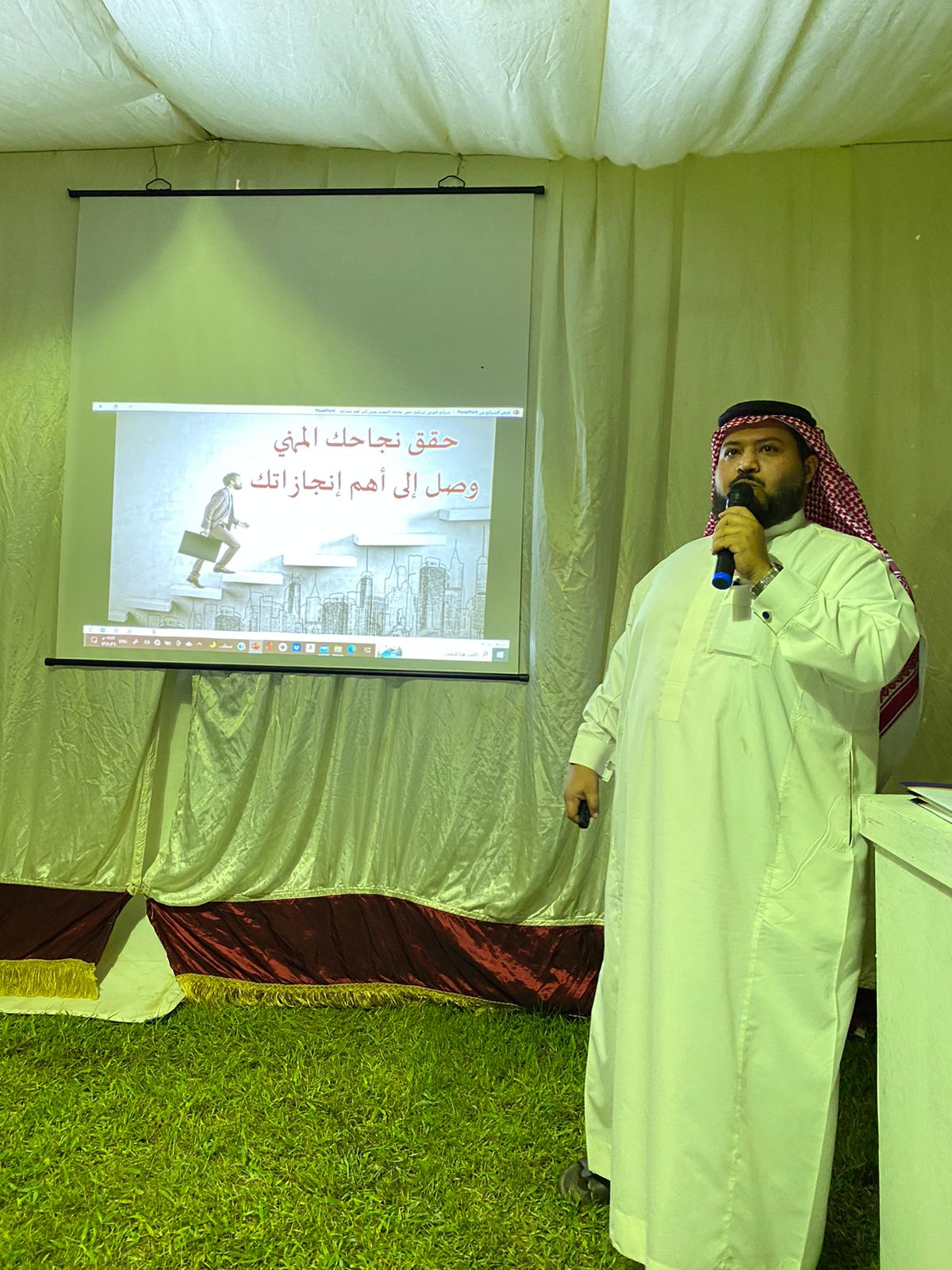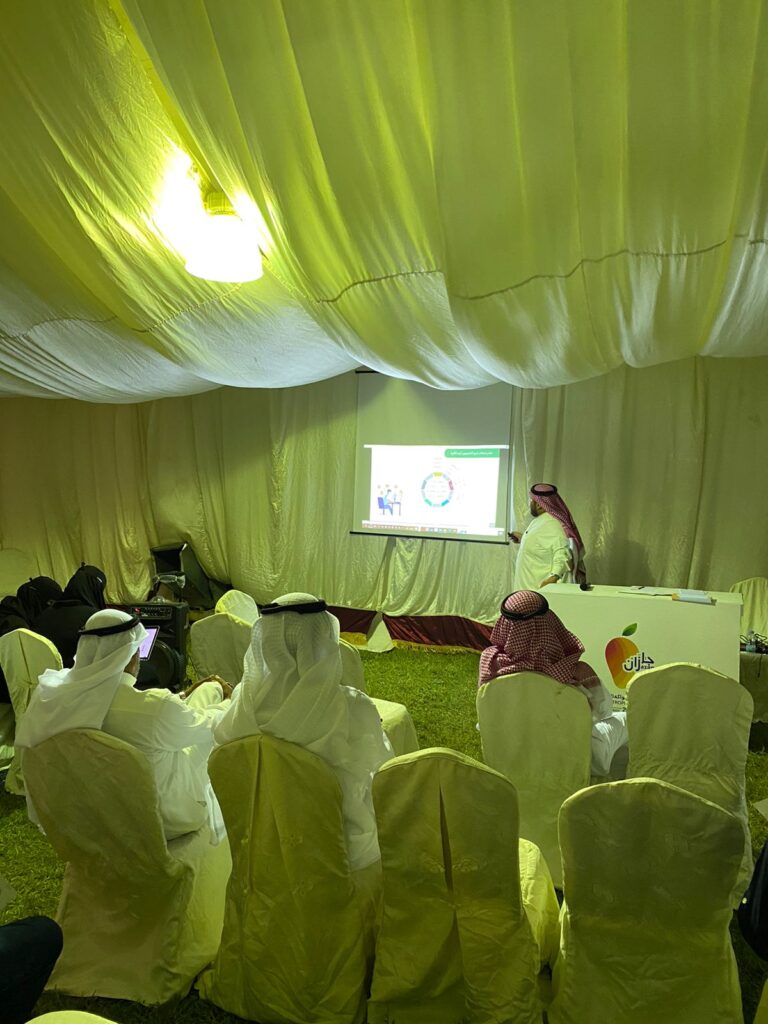 ضمن فعاليات مهرجان المانجو والفواكه الاستوائية 2022م بمحافظة صبيا نظمت الجمعية التعاونية للتسويق الزراعي بمنطقة جازان عددًا من ورش العمل والبرامج التدريبية التي تستهدف المزارعين وزوار المهرجان، حيث اقيمت مساء الاثنين ورشة عمل بعنوان : “حقق نجاحك المهني وصل إلى اهم انجازاتك” بخيمة التدريب بالمهرجان والتي قدمها الاستاذ خالد عبدالعزيز عارضي رئيس جمعية معين التطوعية وقد اشتملت محاور الورشة الحديث عن ما يحتاج إليه العمل أو الفرد شخصيا من مهارات وظيفية مكتسبة ، والعمل على تطويرها من خلال البحث والقراءة أو الالتحاق بأي دراسة أو تدريب أو برنامج ذا صلة ، كما أرشد المتقدمون عن كيفية الاستعداد للمقابلة الوظيفية ومعرفة أهم الأسرار لاجتيازها بنجاح، بالإضافة إلى كيفية تطوير الذات وكيفية التعامل مع بيئة العمل بما يحقق النجاح الوظيفي. والتعرف بشكل جيد على القيم المهنية والحياتية المحركة للفرد في قراراته، والميول والاهتمامات الشخصية