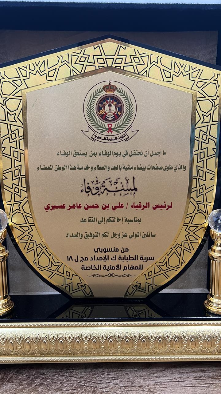 وبلمسة وفاءٍ وتقدير أيضاً قدّم “عسيري” شكره وامتنانه لجميع من شاركه هذه المناسبة من قادة وضباط وزملاء عامةً، ولأسرته الكريمة خاصةً على مساندتهم ودعمهم لمسيرته العملية داخل المملكة وخارجها.
