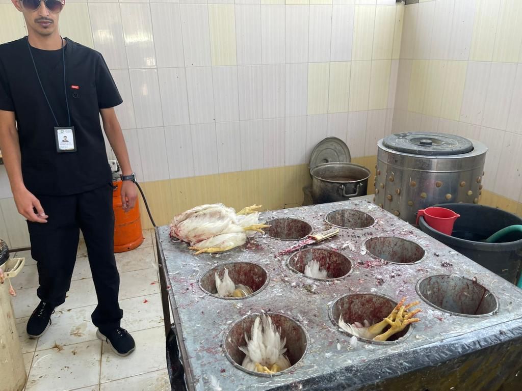 وأوضح مدير عام الرخص و الرقابة الشاملة الدكتور محمد العاوي بأن مراقبي البلدية وخلال جولاتهم المكثفة تمكنوا من رصد وإغلاق موقعًا عشوائيًّا جرى استخدامه كمسلخ عشوائي لذبح الدواجن بطريقة تفتقر لأدنى المعايير و الاشتراطات الصحية، و تم مصادرة منتجات المسلخ قبل بيعها و تسويقها ، و جاءت تلك الجهود بالتعاون مع فرع وزارة الزراعة بالمنطقة و بمساندة امنية.