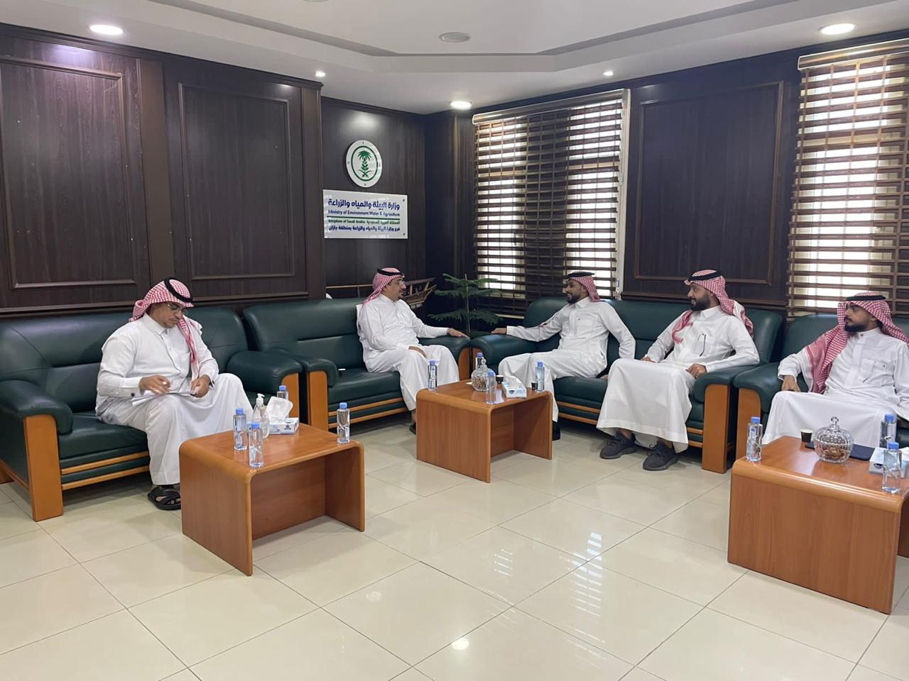 أستقبل مدير عام فرع وزارة البيئة والمياه والزراعة بمنطقة جازان المهندس/ محمد بن علي آل عطيف بمكتبه مدير مبادرات الخطة الوطنية للتوظيف الأستاذ / موسى الكناني ومسؤول تطوير الأعمال في مبادرات التوطين المهندس/ محمد العجيمي ومدير مركز الأبحاث السمكية الأستاذ /إبراهيم عجيمان ، حيث رحب آل عطيف بالكناني ومرافقيه في منطقة جازان . وتم مناقشة اهم المستجدات في مبادارات التوطين وخصوصاً مبادرة توطين مهنه صيد الأسماك .