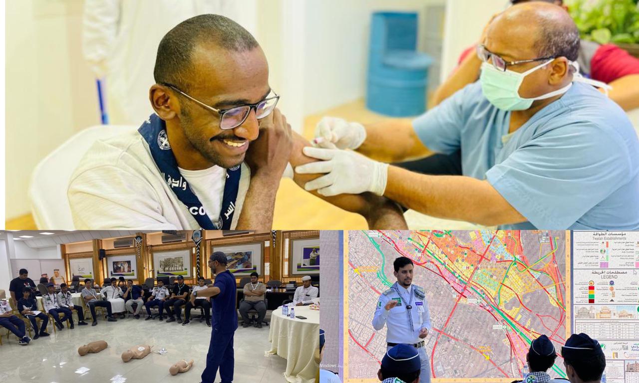 وتعمل قطاعات الجمعية وأنديتها على تأهيل مُشاركيها وتعزيز قدراتهم واكسابهم المزيد من الخبرات والمهارات التي ستسهم في تقديم خدمة مميزة لضيوف بيت الله الحرام، حيث يتدربون على العديد من المهارات ومن أهمها الإطفاء والإخلاء، والخرائط الإرشادية، والمسح ، والإرشاد ، واستخدام الخرائط، وتحديد المواقع لإرشاد الحجاج، بالإضافة إلى فن التعامل مع ضيوف الرحمن.