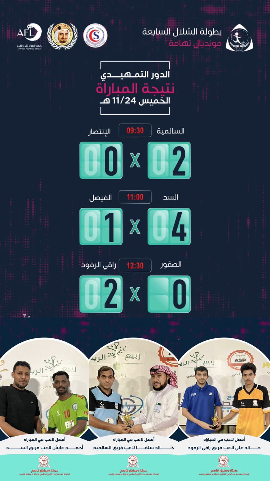 من جهتهِ جَمعت المباراة الثانية فريقي السد والفيصل وقد فاز فريق السد بأربعة أهداف مُقابل هدف وحصل اللاعب “أحمد عائش ” على جائزة أفضل لاعب.