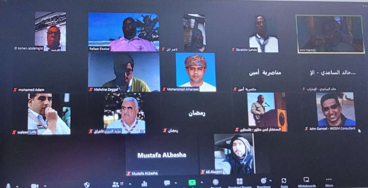 عقد مفوضي التدريب وتنمية القيادات بالجمعيات الكشفية العربية، اجتماعهم الثامن عشر، أمس (عبر الاتصال المرئي) بحضور الأمين العام للمنظمة الكشفية العربية – مُدير الاقليم الكشفي العربي- عمرو حمدي، ورئيس اللجنة العربية الفرعية لتنمية القيادات وتشجيع التطوع محمد بن عبد الله الهنائي.