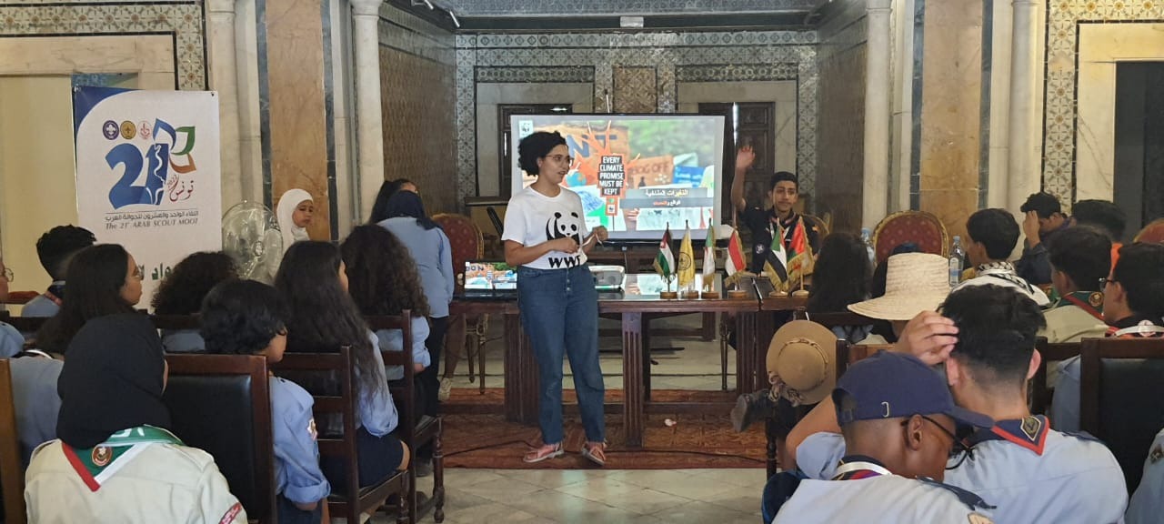 وتضمن حفل افتتاح الندوة الخطابي التي سيكون موضوعها “التغييرات المناخية وقيادة الأعمال المجتمعية” جلسة تعريفية بالندوة، ثم ألقيت عددا من الكلمات تناوب على إلقائها قائد اللقاء منتصر بن مبروك، ونائب مُدير الإقليم الكشفي العربي رفعت السباعي، ومُدير البرامج بالمكتب الكشفي العربي نسيم ضناوي، ورئيس لجنة المستشارين الشباب أحمد الكمياني .