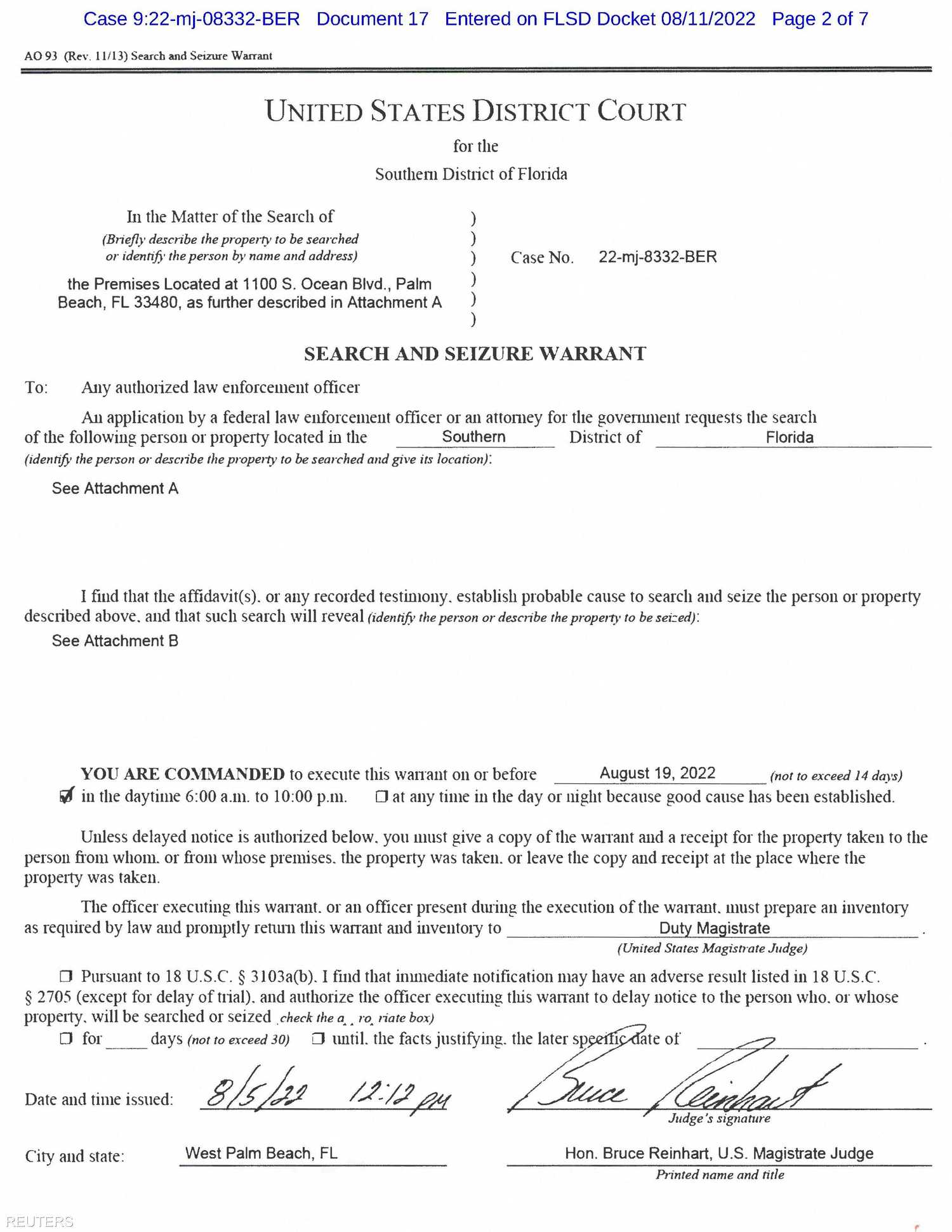 مذكرة التفتيش الخاصة بمداهمة منزل ترامب