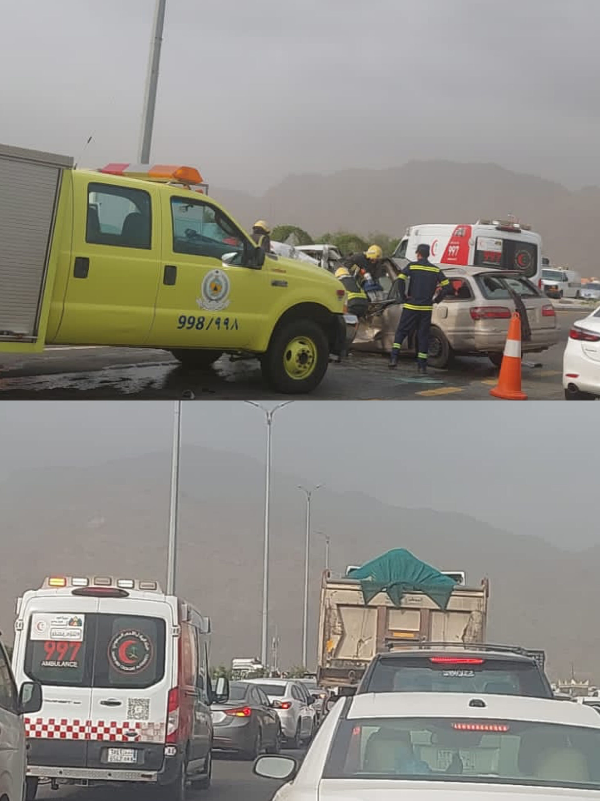 وهرعت فِرق الدفاع المدني والهلال الأحمر السعودي، إلى موقع الحادث إثر إتصالٍ يفيد بوجود حادث مروري أُحتجز على إثره أحد السائقين داخل مركبته في حالةٍ صحية خطرة، وقام أفراد الدفاع المدني بدورهم في قص الباب الأيسر والسياج الحاجز للمركبة وتم إخراجه ونقله بواسطة عربة الإسعاف التابعة للهلال الأحمر السعودي إلى المستشفى .