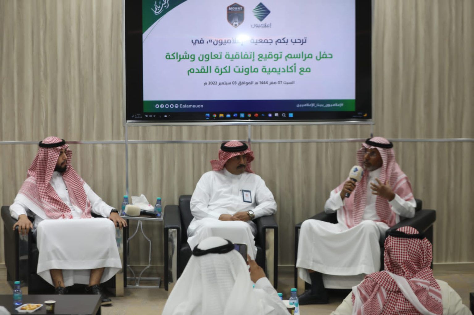 وقعت “إعلاميون” اتفاقية تعاون شراكة مع أكاديمية ماونت لكرة القدم، حيث مثّل الجمعية رئيس مجلس الإدارة الدكتور سعود بن فالح الغربي، ومثّل الأكاديمية مديرها العام الأستاذ عبدالعزيز بن فهد الصائغ، وتم التوقيع بمقر الجمعية في حي الملقا بمدينة الرياض وبحضور عدد من المهتمين بالشأن الاعلامي والرياضي والاجتماعي.