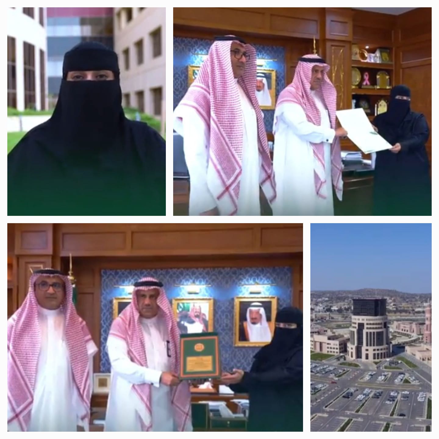 وقدمت الأستاذة سامية فايز الشهري بعد شكرها لله سبحانه شكرها لهذه القيادة الرشيدة ولرئيس الجامعة على هذا التكريم ولكل من وقف بجانبها لتحقيق هذا الإنجاز الذي حصدت الميدالية الذهبية خلال المشاركة فيه.