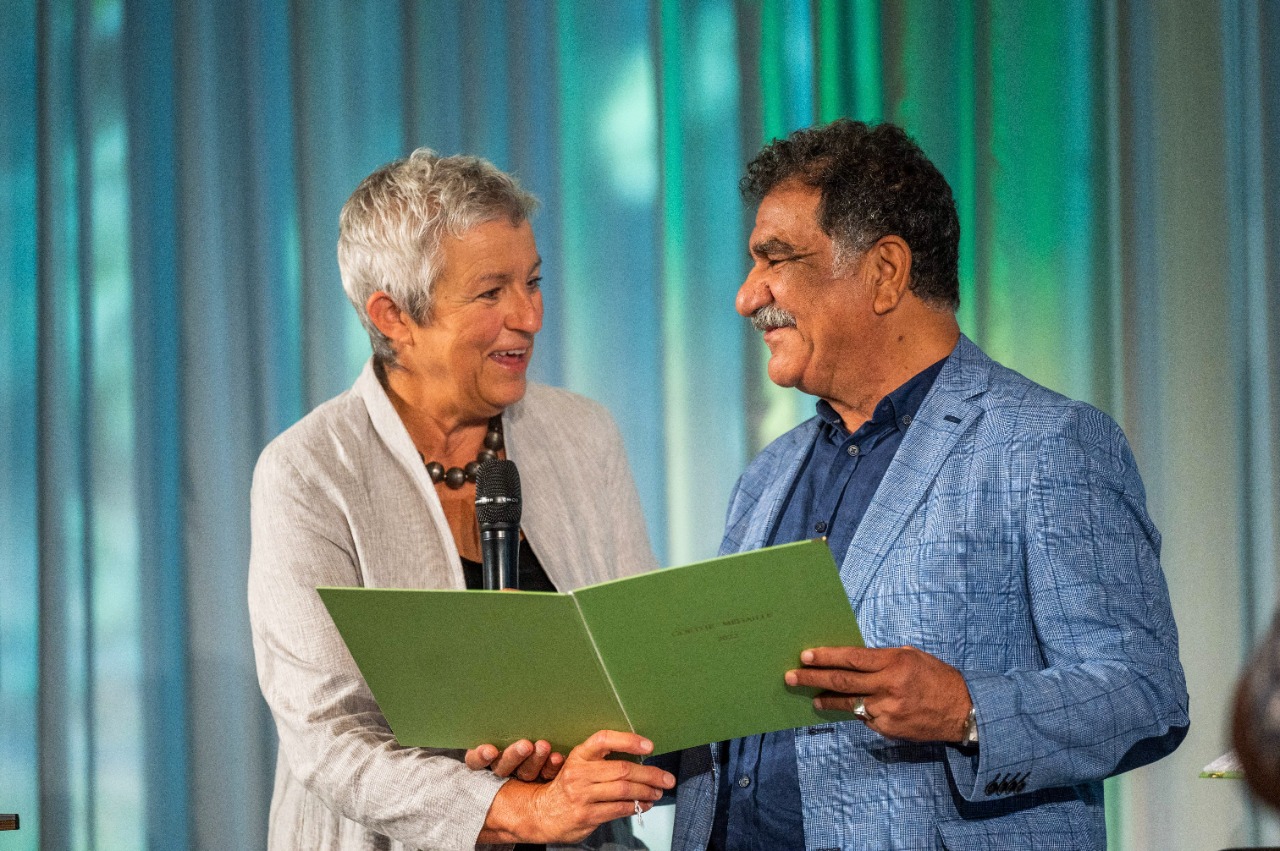 وقد تم تكريم الفنان محمد عبلة كأول فنان تشكيلي عربي يحصل على وسام جوته من قبل رئيسة معهد جوته كارولا لينتز في احتفالية كبرى في مدينة فايمار الألمانية، وفي حضور السيدة أنالينا بيربوك وزيرة الخارجية الألمانية، والسيد بينيامين إيمانويل هوف وزير الشئون الثقافية والمحلية والأوروبية. يعد وسام جوته هو أرفع وسام شرف رسمي لجمهورية ألمانيا الاتحادية وأهم جائزة في سياستها الثقافية الخارجية. يكرم الشخصيات التي تلتزم بشكل خاص بالتبادل الثقافي الدولي أو نشر اللغة الألمانية. تقترح معاهد جوته في الخارج المرشحين بُناءً على أهميتهم الثقافية والسياسية وعملهم الفني ، ويتم اختيار الفائزات والفائزين من قبل لجنة تحكيم متخصصة مكونة في العلوم والفنون والثقافة. تم التبرع بميدالية جوته من قبل مجلس إدارة معهد جوته في عام ١٩٥٤، كما تم الإعتراف بها كشارة شرف رسمية من قبل جمهورية ألمانيا الاتحادية في عام ١٩٧٥. منذ منح الجائزة لأول مرة عام ١٩٥٥، تم تكريم ٣٧١ شخصية من ٦٩ دولة.