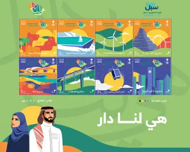 وابتهاجاً بهذه الذكرى الغالية واستمراراً لدورها في توثيق المناسبات الوطنية والتعريف بالمنجزات الحضارية المختلفة، أصدرت مؤسسة البريد السعودي | سبل طابعاً بريدياً تذكارياً من فئة 3 ريالات وبطاقةً بريدية من فئة 5 ريالات، احتوت على ثمانية مشاريع رائدة تشكل الهوية الوطنية لرؤية الوطن 2030 في دلالات ورمزية لمشاريع القطارات، مشروع ذا لاين “نيوم”، مشروع بوابة الدرعية، القمر الصناعي شاهين سات، البرنامج الوطني للطاقة المتجددة، مشروع أمالا، مشروع القدية، مشروع تروجينا “نيوم”.