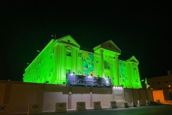 مبنى الدفاع المدني بالجوف يتوشح باللون الأخضر إحتفاءً بمناسبة اليوم الوطني ال 92Hla