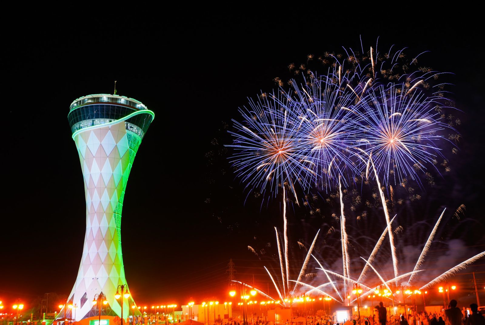 رسمت الألعاب النارية في فعاليات الاحتفال باليوم الوطني الـ 92 للمملكة في مدينة عرعر، لوحة جمالية نالت استحسان زوار الفعاليات، وذلك في حديقة برج مياه عرعر.