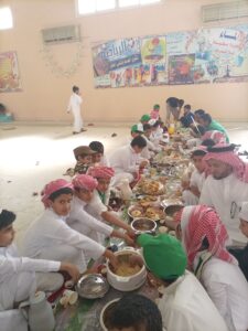 بعد ذلك توالت الفعاليات بشيلة وطنية ثم استعراض لأعمال طلاب المدرسة المشاركين بها بمناسبة اليوم الوطني وبرنامج المرسم الحر لتختتم الفعاليات بأداء العرضة السعودية وتناول طعام الإفطار المعد بهذه المناسبة.