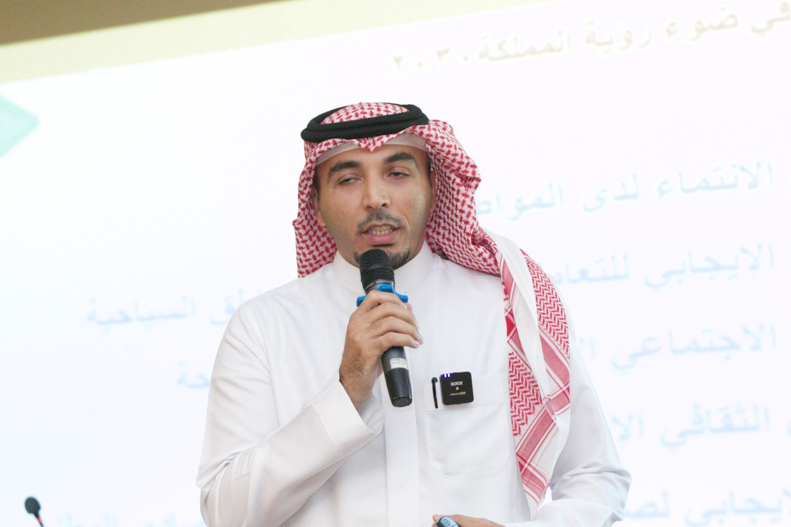 من جانبه تحدث الدكتور أحمد العمير مستشار الجمعية عن أهمية الإعلام السياحي كأحد فروع الإعلام المتخصص والذي يتم بصورة مؤسسية ممنهجة عبر أساليب ووسائل فنية متعددة كما تحدث عن صناعة السياحة والفرق بين صياغة الخبر الإعلامي وصياغة الخبر الإعلامي السياحي وكيفية ذلك ثم استعرض أبرز الوظائف والأدوار العامة والخاصة للإعلام السياحي باعتباره أحد أذرع صناعة السياحة وشريكا مهما ومؤثرا.