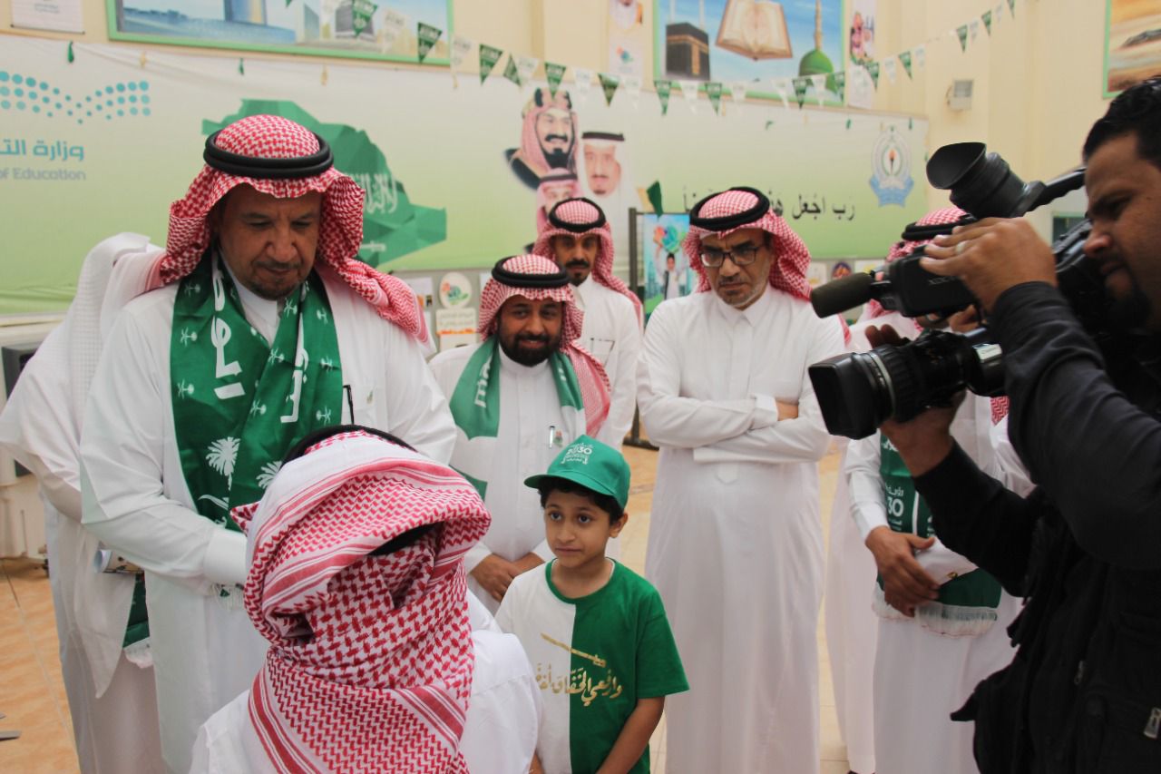 حيث قام الطخيم والحضور بتسجيل مشاعرهم بهذه المناسبة على لوحة مشاعر وطنية ثم جولة على المعرض الفني المصاحب وكذلك استمع الحضور لمشاركات وطنية لطلاب القسم ،تلاها لوحات استعراضية للطلاب تحت إشراف الأستاذ يوسف كشر حيث قام الطلاب بتشكيل الرقم 92 حاملين الأعلام ثم شارك الطخيم طلابه العرضة السعودية .
