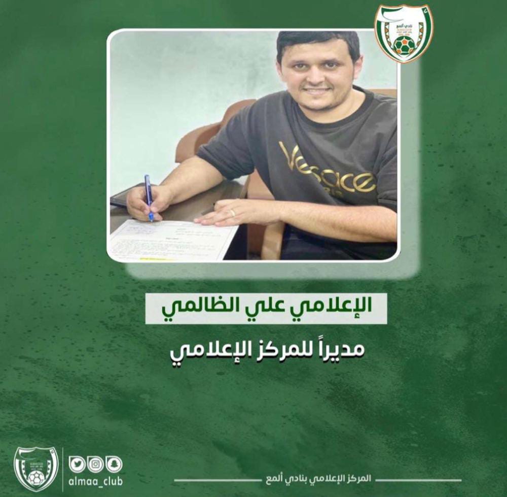 تم تكليف الأستاذ علي بن محمد الظالمي مديراً للمركز الإعلامي بنادي ألمع الرياضي وذلك لما يملكه من الخبرات والمؤهلات التي تمكنه من العمل في هذا المجال الإعلامي والرياضي.