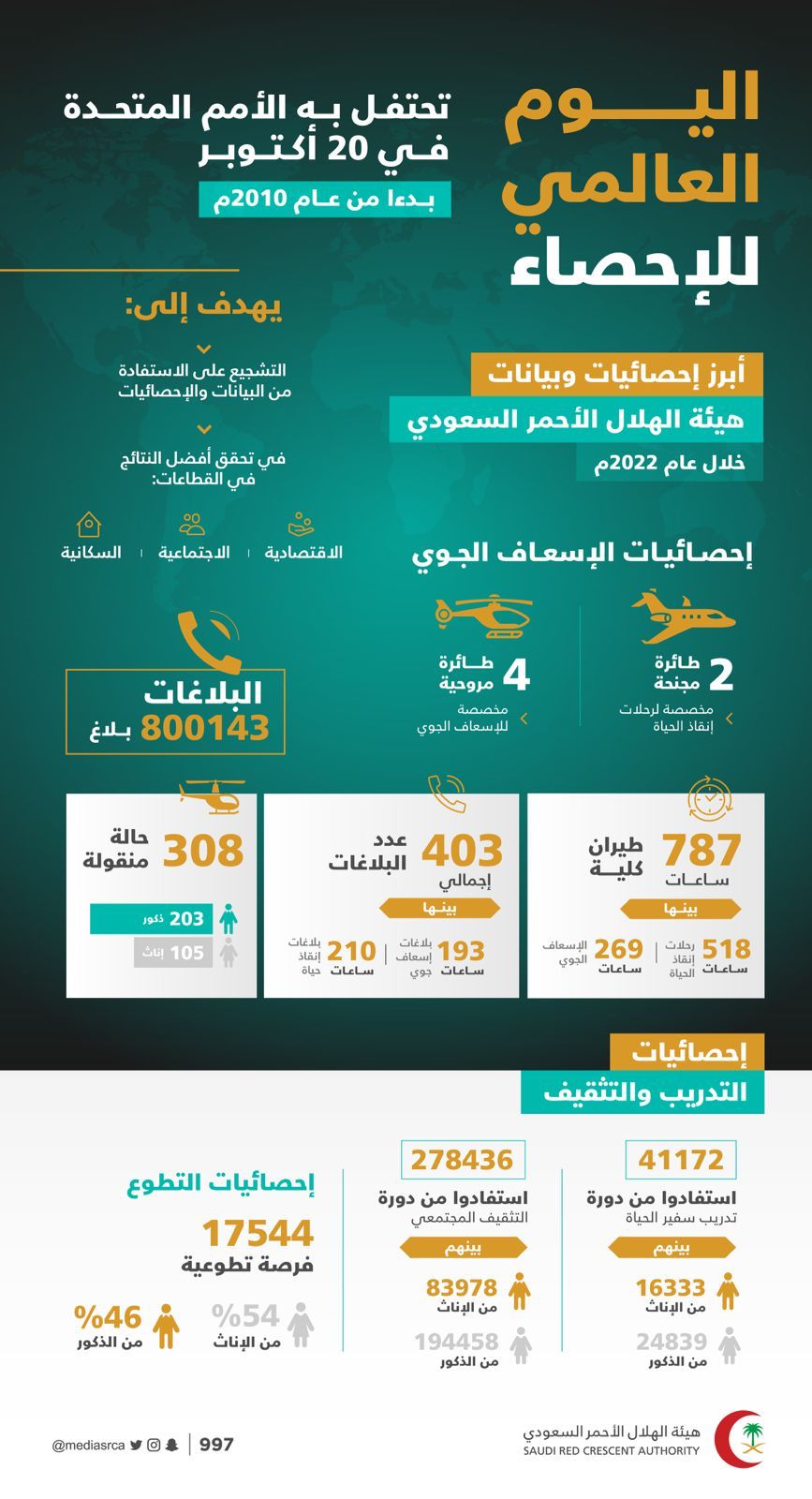 الهلال الأحمر السعودي: الإحصائيات والبيانات تشكل عصب العمل الإسعافي