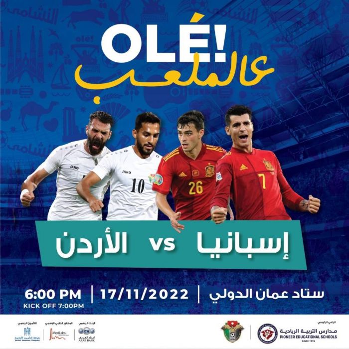 أطلق الإتحاد الأردني لكرة القدم، الحملة الترويجية الخاصة بالمواجهة الودية المثيرة والتي تجمع منتخب النشامى مع الماتادور الإسباني، عند السابعة مساء الخميس 17 تشرين الثاني القادم، على ستاد عمان الدولي، تحت شعار” Oléعالملعب”.