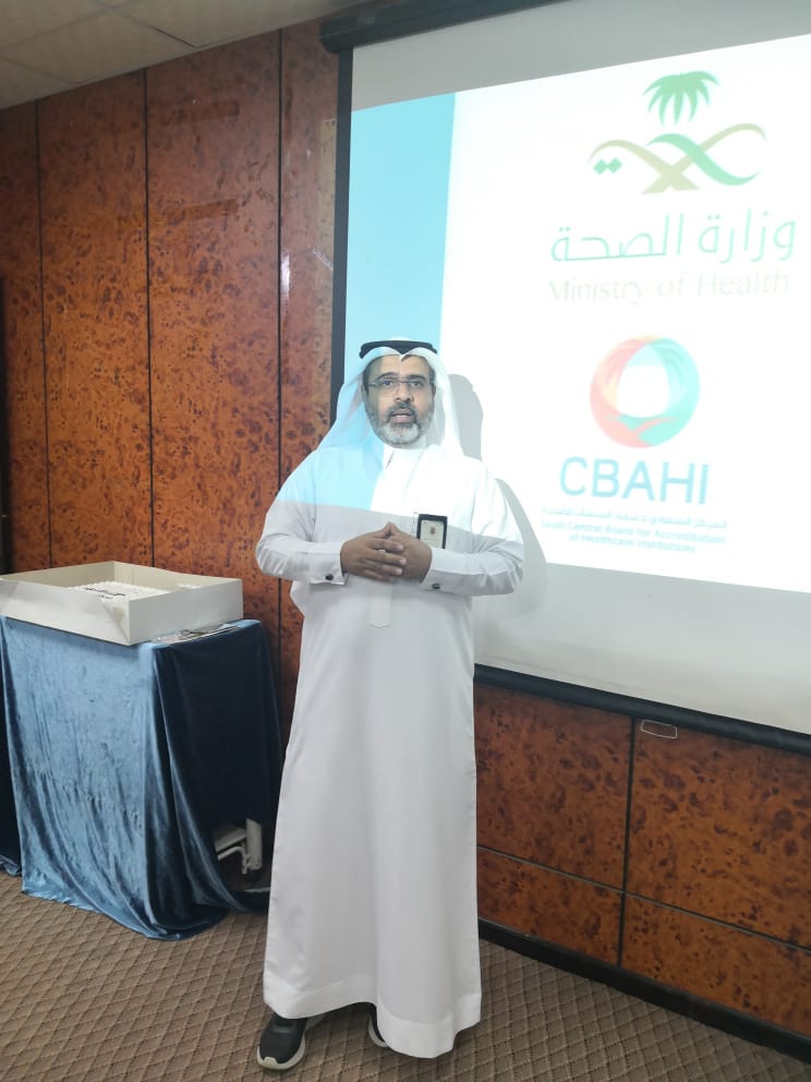عقب ذلك قام المساعد لقسم الجودة الأخصائي علي الزيادي بإلقاء كلمة شرح خلالها خطة العمل التي تم تطبيقها للوصول بخدمات القطاع الصحي إلى مستوى عالي من الجودة وبمشاركة جميع الأقسام في تنفيذها والعمل عليها بكل دقة مما ساهم في تجاوز جميع العقبات التي كانت عائقاً في طريق النجاح.