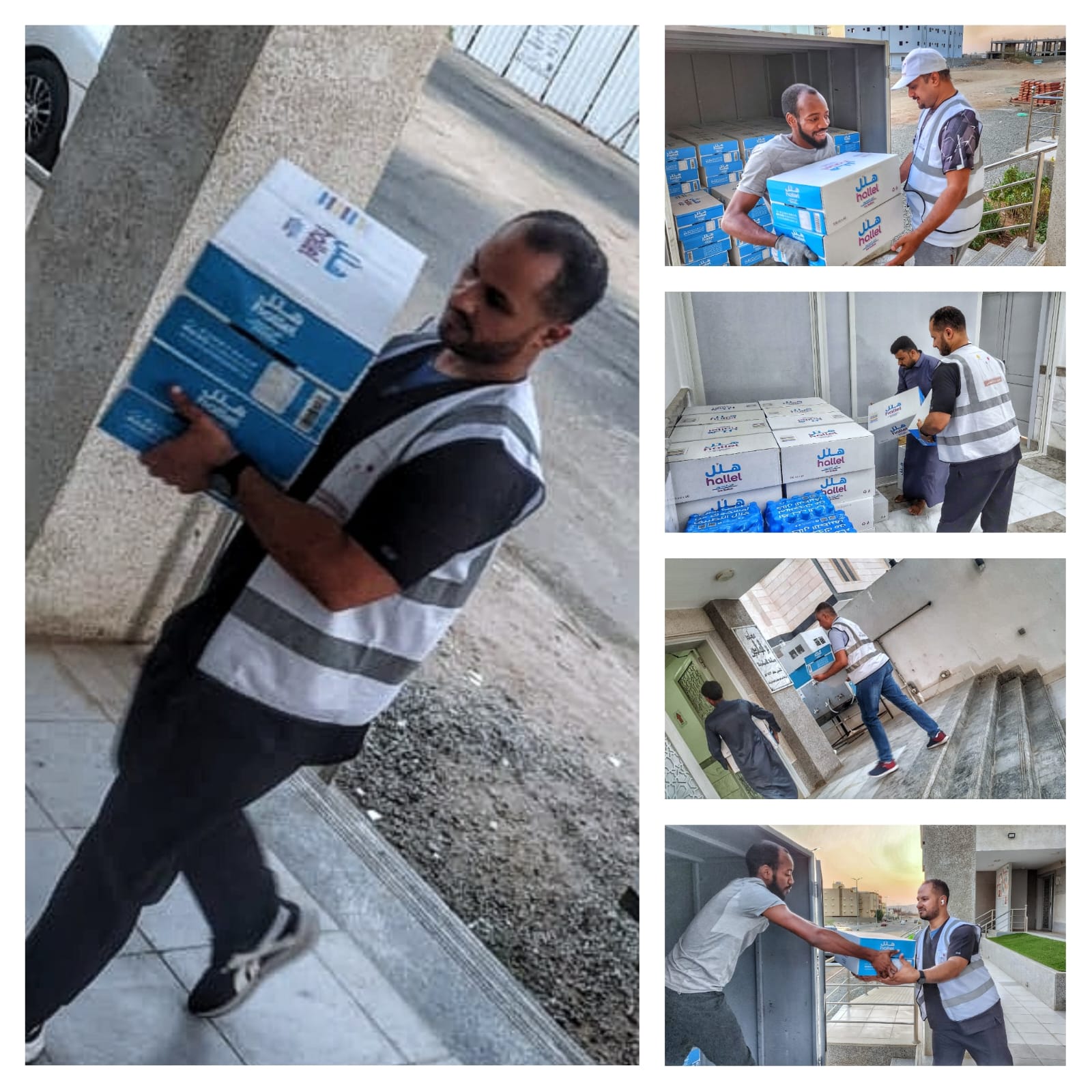 بتوزيع 100 كرتون ماء على مسجد بر الوالدين بمخطط ولي العهد بمكة المكرمة