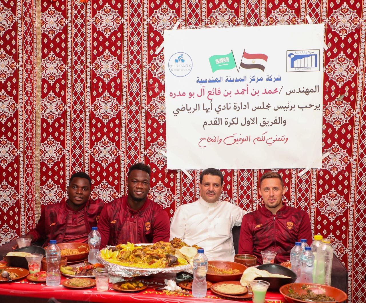 أقام المهندس / محمد أحمد آل أبو مدره مأدبة عشاء لبعثة الفريق الأول لكرة القدم بنادي أبها بعد نهاية مباراة أبها وانبي المصري في المعسكر الخارجي في مصر