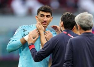 الحارس الإيراني علي رضا بيرانواند يغادر مباراة بلاده بعد تعرضه لإصابة قوية