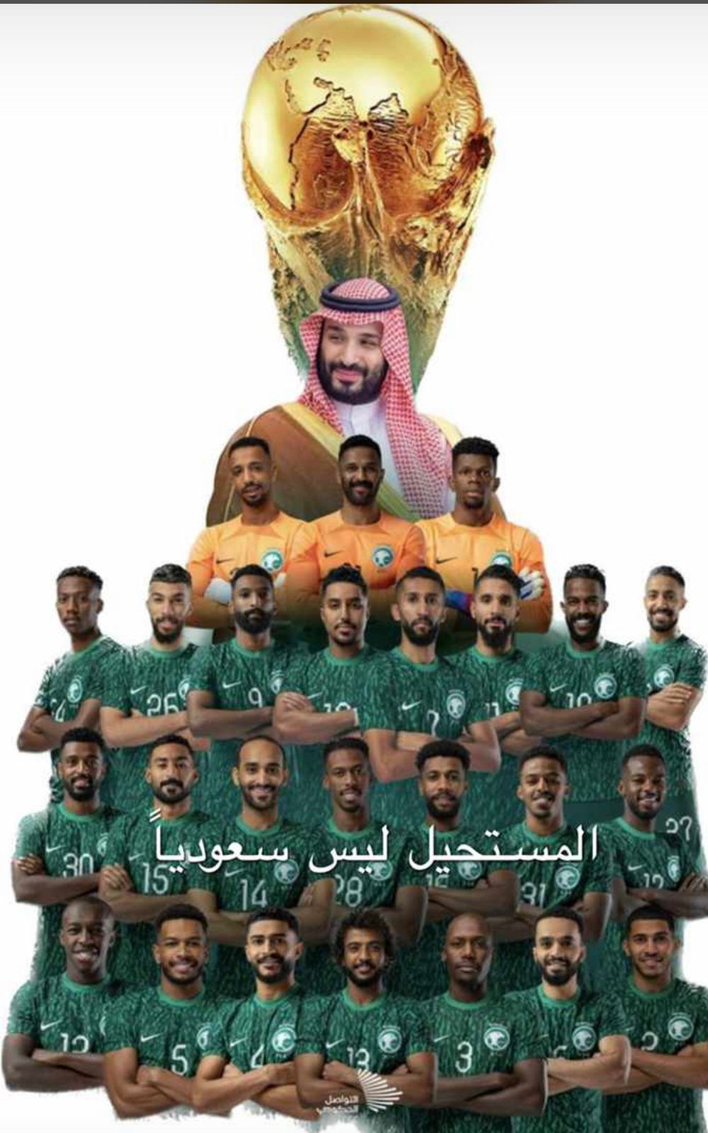 لمقام خادم الحرمين الشريفين وولي عهده الأمين والشعب السعودي بمناسبة فوز المنتخب السعودي ولتميزه على الأرجنتين في أول مباراة كأس العالم ٢٠٢٢