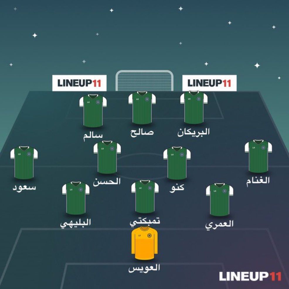 محمد العويس – سعود عبد الحميد – علي البليهي – حسان تمبكتي – عبد الإله العمري – سلطان الغنام – محمد كنو – علي الحسن – فراس البريكان – سالم الدوسري – صالح الشهري