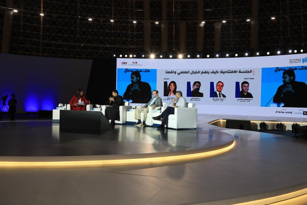 وحملت جلسة الافتتاح عنوان “كيف يلهم الخيال العلمي واقعنا”، تناول المشاركون خلالها مفهوم الخيال العلمي، وارتباطه بالواقع، مستشهدين بأمثلة واقعية لخيالات علمية كُتب عنها في الألفية الأولى، وتحققت في الألفية الثانية حيث افتتحت الجلسة بمقدمة تعريفية عن الخيال العليمي، ونبذة عن سيرة الضيوف، قدمتها الأكاديمية والمذيعة في قناة الشرق السعودية مايا حجيج، طارحة على المحاضرين عددًا من الأسئلة المتمحورة حول العلم والخيال العلمي.