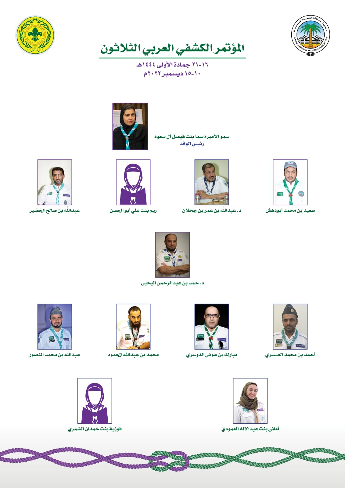تترأس سمو الأميرة سما بنت فيصل بن عبدالله آل سعود رئيسة لجنة فتيات الكشافة السعودية، وفد جمعية الكشافة العربية السعودية المُشارك في المؤتمر الكشفي العربي الثلاثون المُقرر عقده خلال الفترة 16- 21 جمادى الأولى 1444هـ الموافق 10-15 ديسمبر 2022م، والذي تعقده المنظمة الكشفية العربية- الإقليم الكشفي العربي- ويستضيفه (عبر الاتصال المرئي) اتحاد كشاف لبنان، برعاية دولة رئيس مجلس الوزراء في الجمهورية اللبنانية نجيب ميقاتي.