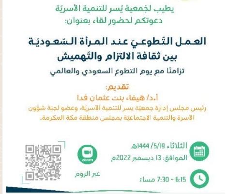 جمعيَّة يسر للتنمية الأسريَّة تقيم الجمعية لقاء بعنوان: