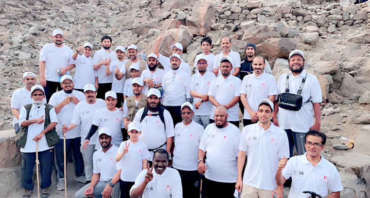 شارك في هذه الفعالية( ٤٣) مشارك الجميع قام بجمع المخلفات التي كانت تعيق المارة وحملوها في اكياس من غار حراء إلى اسفل الجبل