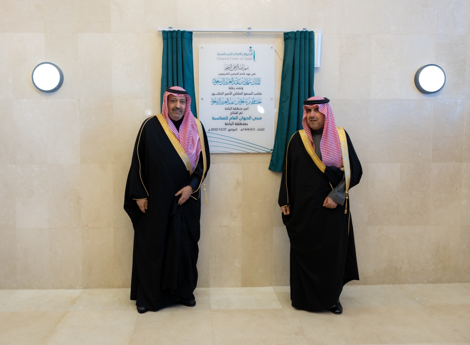 دشّن صاحب السمو الملكي الأمير الدكتور حسام بن سعود بن عبدالعزيز أمير منطقة الباحة اليوم، المبنى الجديد لفرع الديوان العام للمحاسبة بالمنطقة، بحضور معالي رئيس الديوان العام للمحاسبة الدكتور حسام بن عبدالمحسن العنقري، وعدد من مسؤولي الديوان.