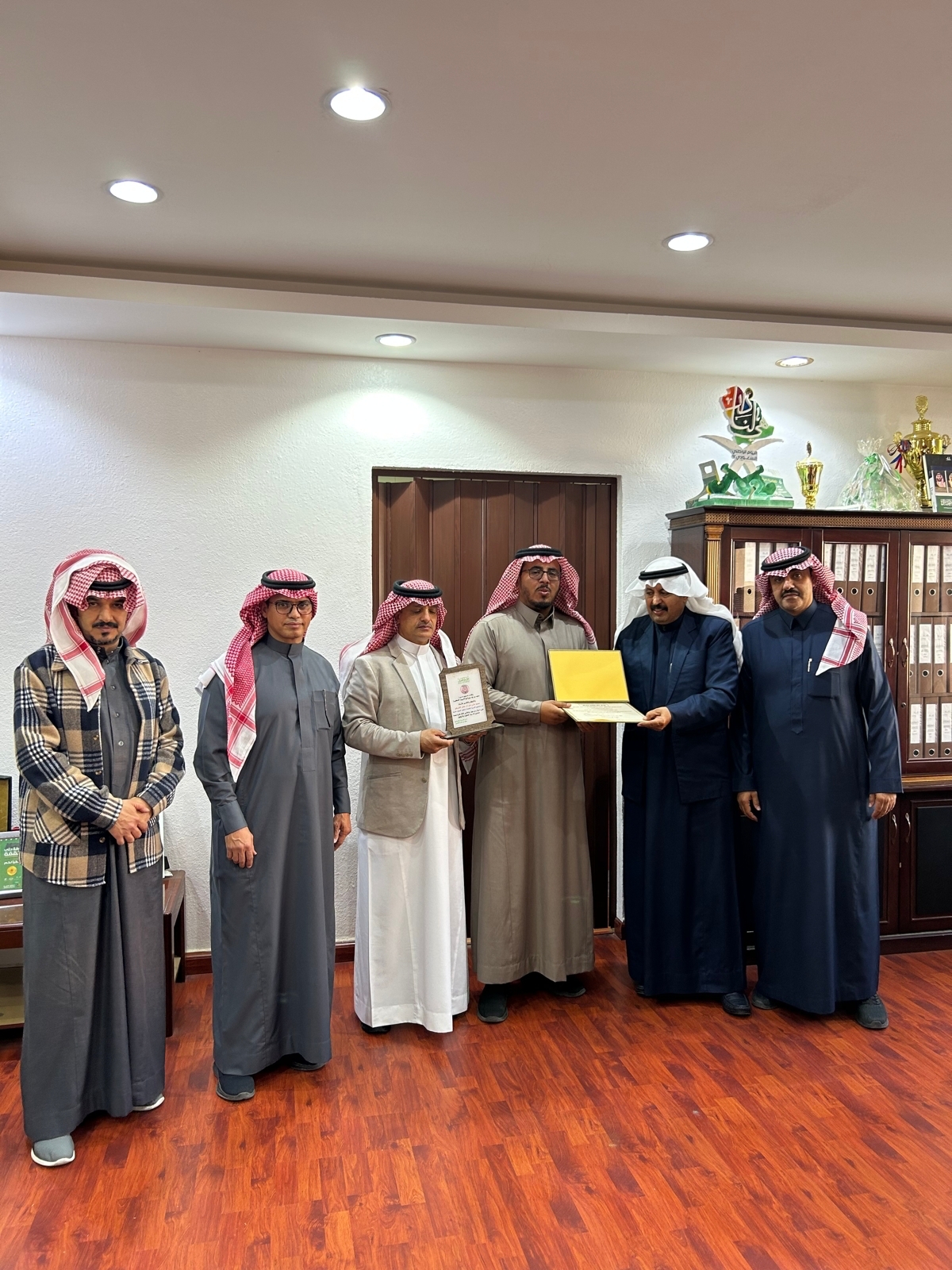 حيث تم منحه شهادة شكر وتقدير وعرفان وهدية تذكارية من إدارة المدرسة قدمها مدير المدرسة الاستاذ سعيد بن علي الهاجري بحضور سعادة مدير إدارة التربية الخاصة بتعليم عسير(سابقا )الأستاذ منصور محمد ناصر الشهراني وشارك في برنامج التكريم الاستاذ خالد بن ناصر آل خرصان وكيل المدرسة للشؤون التعليمية والأستاذ عبدالله علوان آل وضاح وكيل المدرسة لشؤون الطلاب والموجه الطلابي بالمدرسة الأستاذ معدي حسين على ال حيه وشارك في التكريم الاستاذ سعيد معتق علي آل مطارد أخصائي النطق والكلام والأستاذ عبدالله مرزوق الغامدي والأستاذ ظافر الشهري من أعضاء هيئة التدريس بالمدرسة .