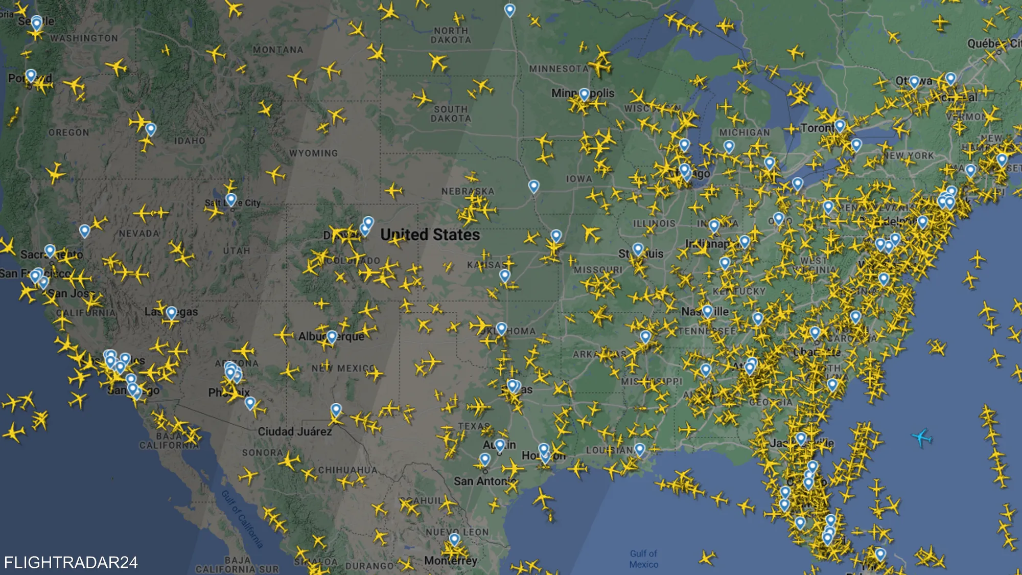 من جانب أخر وثقت صورة من موقع “فلايت رادار”، العدد الهائل للطائرات التي تحلق فوق الولايات المتحدة حاليا، في ظل العطل التقني الذي أدى إلى وقف جميع الرحلات الجوية في مختلف أنحاء البلاد.