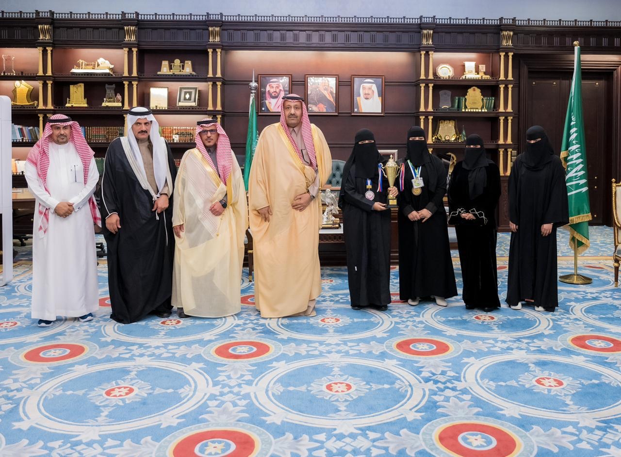 جاء ذلك خلال استقبال سموه بمكتبه بديوان الإمارة اليوم، رئيس نادي الحجاز الرياضي عبدالله بن مفرح الدويحي وفريق كرة الطاولة بالنادي “سيدات”، بحضور مدير فرع وزارة الرياضة بالمنطقة سلطان حسن آل شايع .