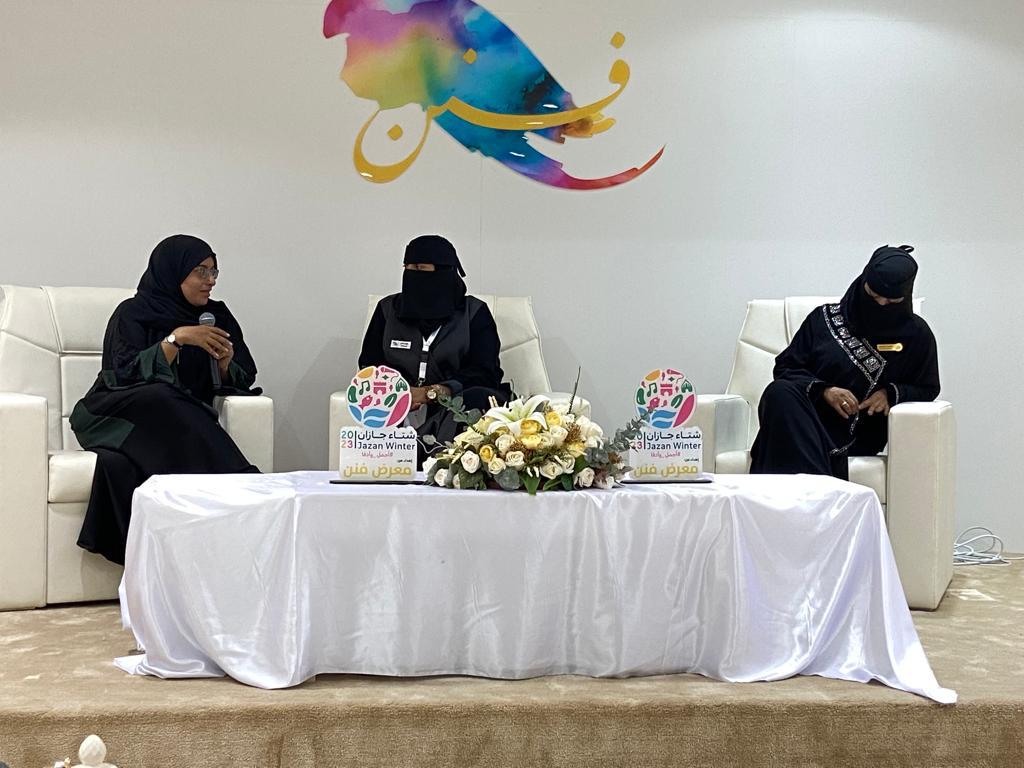 استضافت منصة معرض فنن ضمن فعاليات شتاء جازان 2023 بالمركز الحضاري بجازان الفنانتين التشكيلتين رئيس فنون نادي جازان أ. نجاح بنت حمود الزائري وأ. حليمة هندي نائبة جمعية الثقافه والفنون في لقاء حواري مع الفنانة التشكيلة والقارئه والمحلله للوحات التشكليه بالمعرض/ رقية بنت عبده مدخلي وبحضور نخبة من المهتمين بالفن التشكيلي وزوار المعرض .