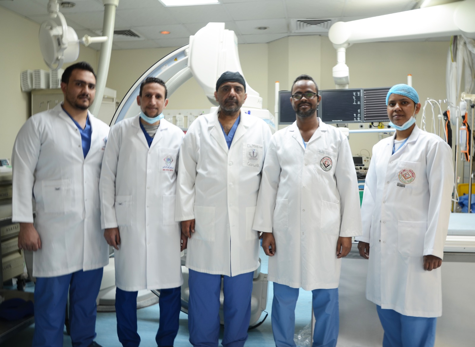 ويسرد الدكتور عادل المصوري مشيراً إلى أن المريض كان يعاني من جلطة قلبية حادة, وتوقف في القلب لأكثر من مرة مما جعل الفريق الطبي يقوم بإجراءات طبية عاجلة من خلال إجراء قسطرة عاجلة للقلب, وفتح الشريان التاجي للقلب ,وتبين وجود انسداد تام لشريان القلب ناتج عن جلطة قلبية حيث تم إعادة فتح الشريان, وعودة تغذية القلب إلى طبيعته وإنقاذ حياته- بعد الله- في أقل من 30 دقيقة.و بعد ٤ ساعات تقريبا تم فصل المريض عن جهاز التنفس الصناعي