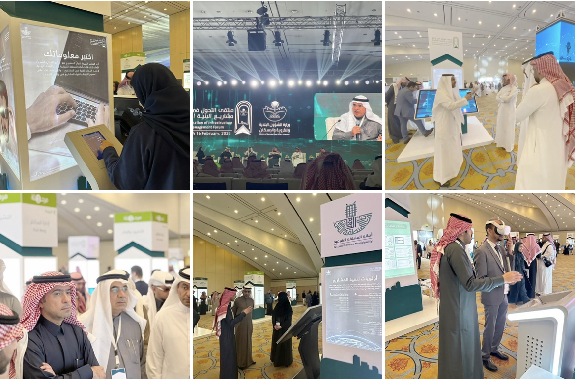 وعرضت الأمانة من خلال ركنها المشارك، منهجيتها في أولويات تنفيذ المشاريع من مشاريع إنشاء الطرق، والحدائق العامة، والساحات، وأنسنة الطرق، وعيش التجربة؛ من خلال الواقع الافتراضي تستطيع الزائر زيارة مواقع مميزة وجاذبة للسكان والمستثمرين والسياح في المنطقة الشرقية، كذلك استعرضت الأمانة تجاربها الناجحة في الابتكارات المختلفة في تنفيذ المشاريع.)