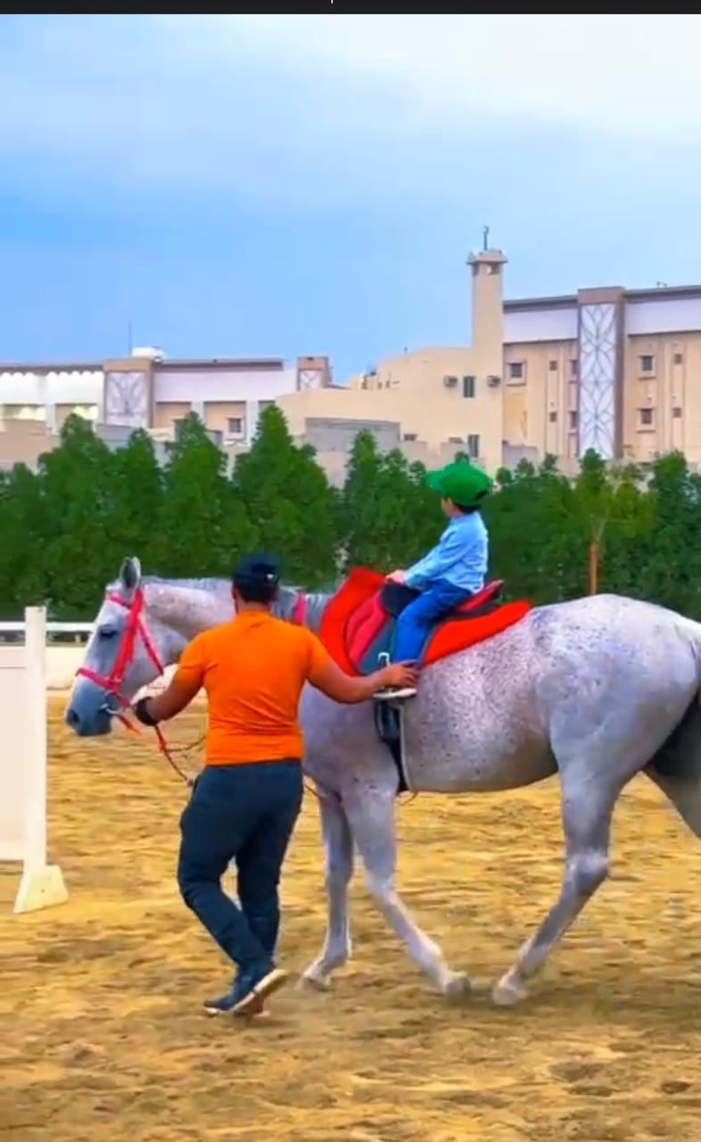 وقد حضر عدد من أسر وأطفال طيف التوحد ومشاركة كل طفل بركوب الخيل مع المدرب المختص بذلك