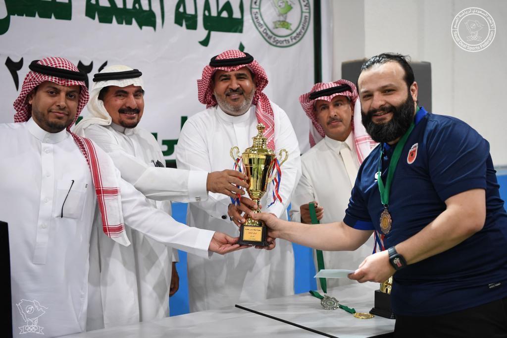 وتوج رئيس الاتحاد السعودي لرياضة الصم الدكتور سعيد بن محمد القحطاني وبحضور رئيس نادي جدة للصم فايز الجدعاني ورئيس مركز الصم بمكة المكرمة فيصل الثبيتي ونائب نادي الصم بالدمام المهندس عبدالله الشمري والمدير التنفيذي للاتحاد عبدالله العيسى أصحاب المراكز الأولى في البطولة وتم تكريم جامعة اليمامة حيث تسلم مدير المشاريع بالجامعة صقر العمرو درع تذكاري نيابة عن الدكتور خالد بن محمد الخضير رئيس مجلس الأمناء في الجامعة .