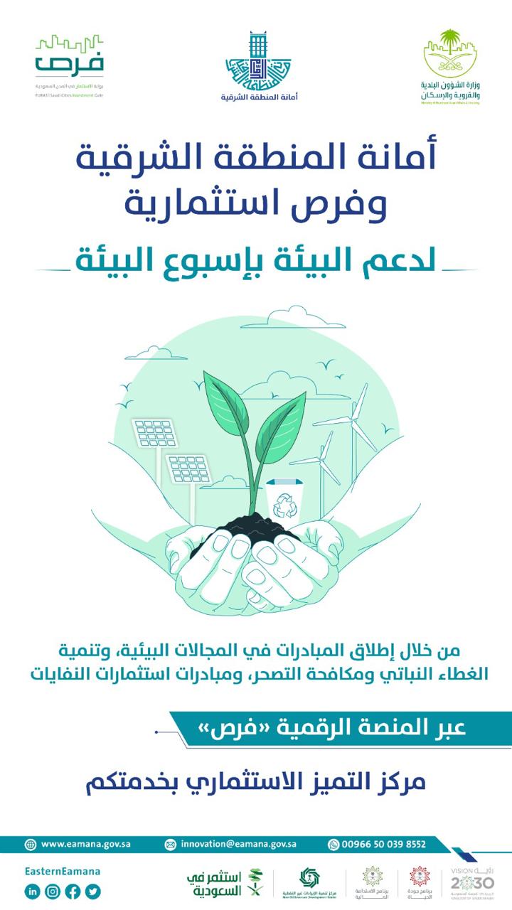 تواصل أمانة المنطقة الشرقية، جهودها في تنشيط الحركة الاقتصادية بالمنطقة الشرقية، وذلك تزامناً مع أسبوع البيئة، وضمن أهداف رؤية المملكة 2030 في تطوير منظومة الاستثمار وتنمية الإيرادات، وتحقيق مفهوم الاستدامة المالية وتطوير الخدمات المقدمة عبر إشراك القطاع الخاص في التنمية.
